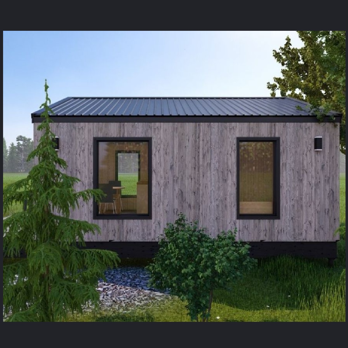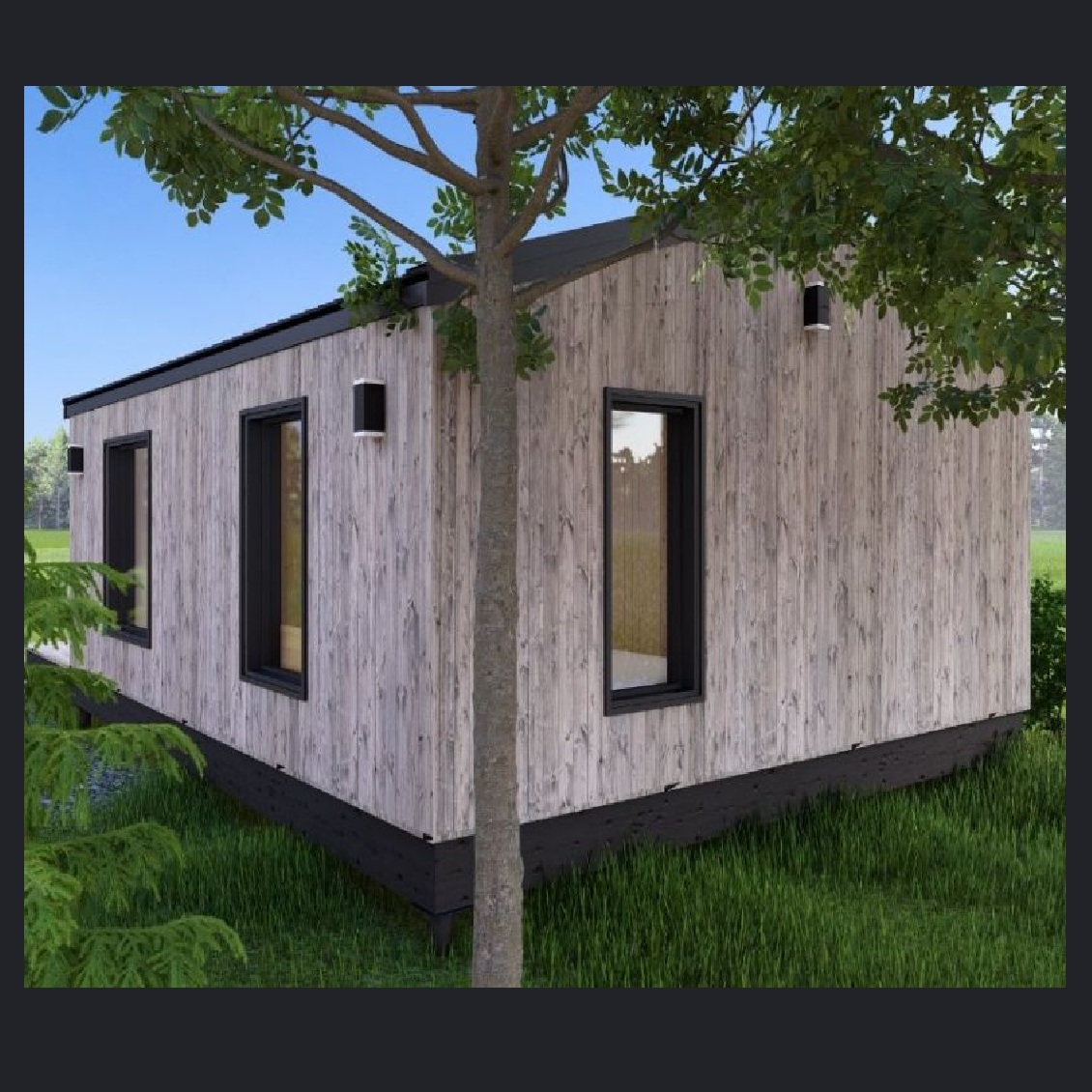 - Наружная отделка - проф.лист комбинированный с деревянными рейками, покрытыми маслом;