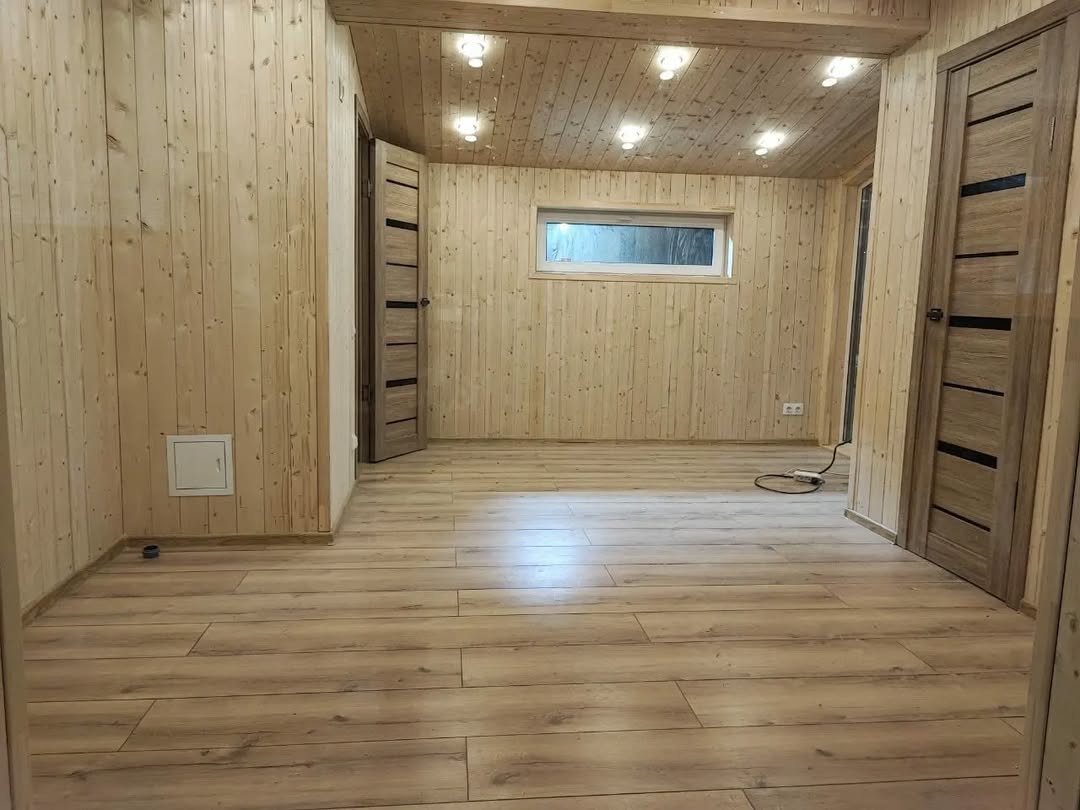 - Сан узел - отделка имитация бруса, на полу ламинат;